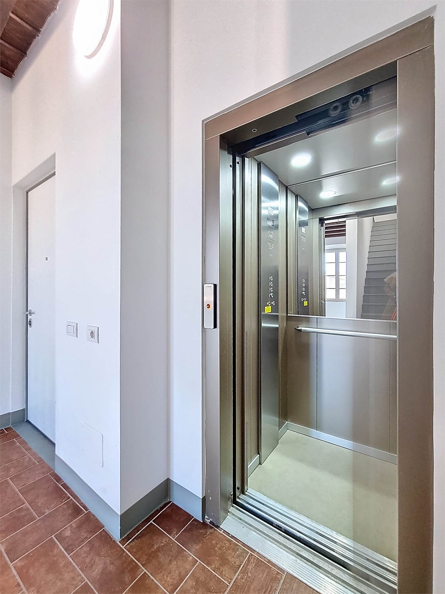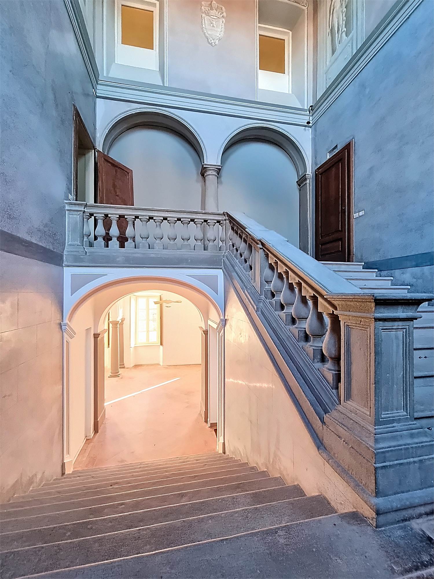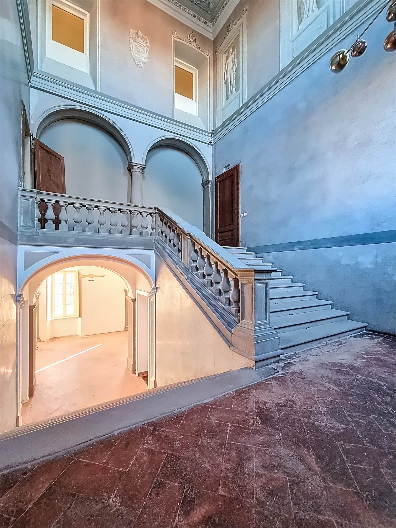 L’accesso avviene dal corpo centrale della villa, attraversando lo scenografico scalone nobiliare, elemento architettonico di grande valore storico e artistico che accompagna l’ingresso alla residenza.