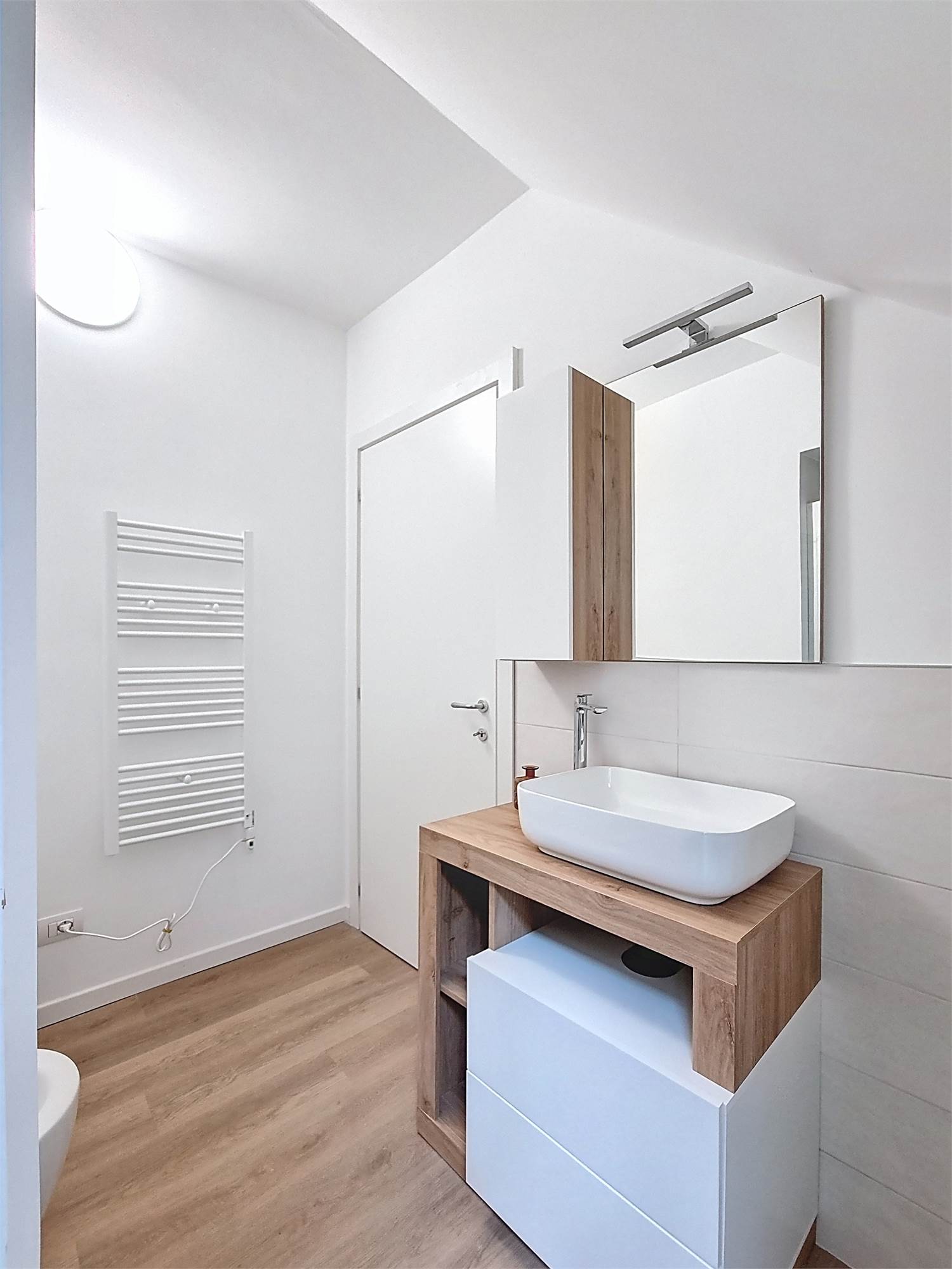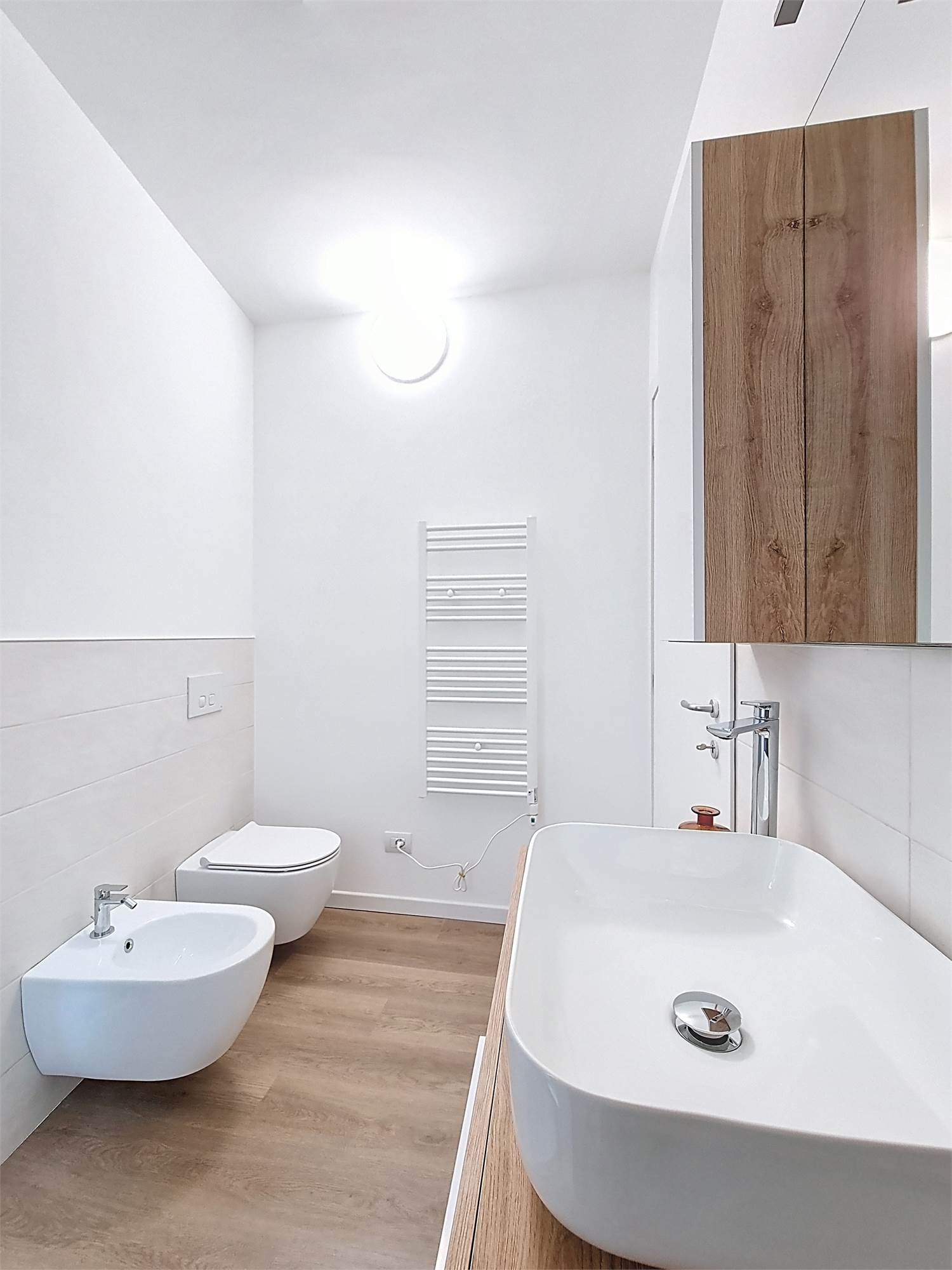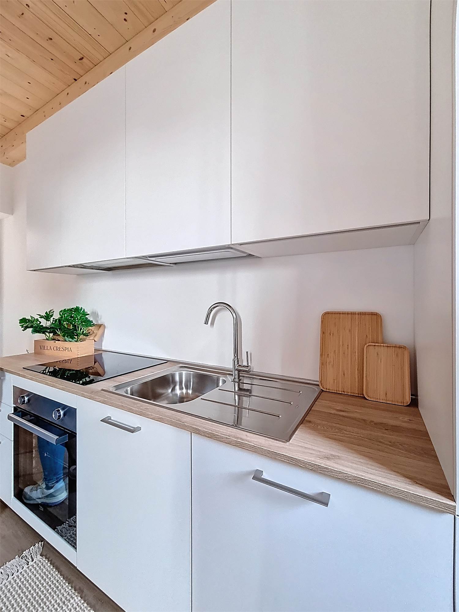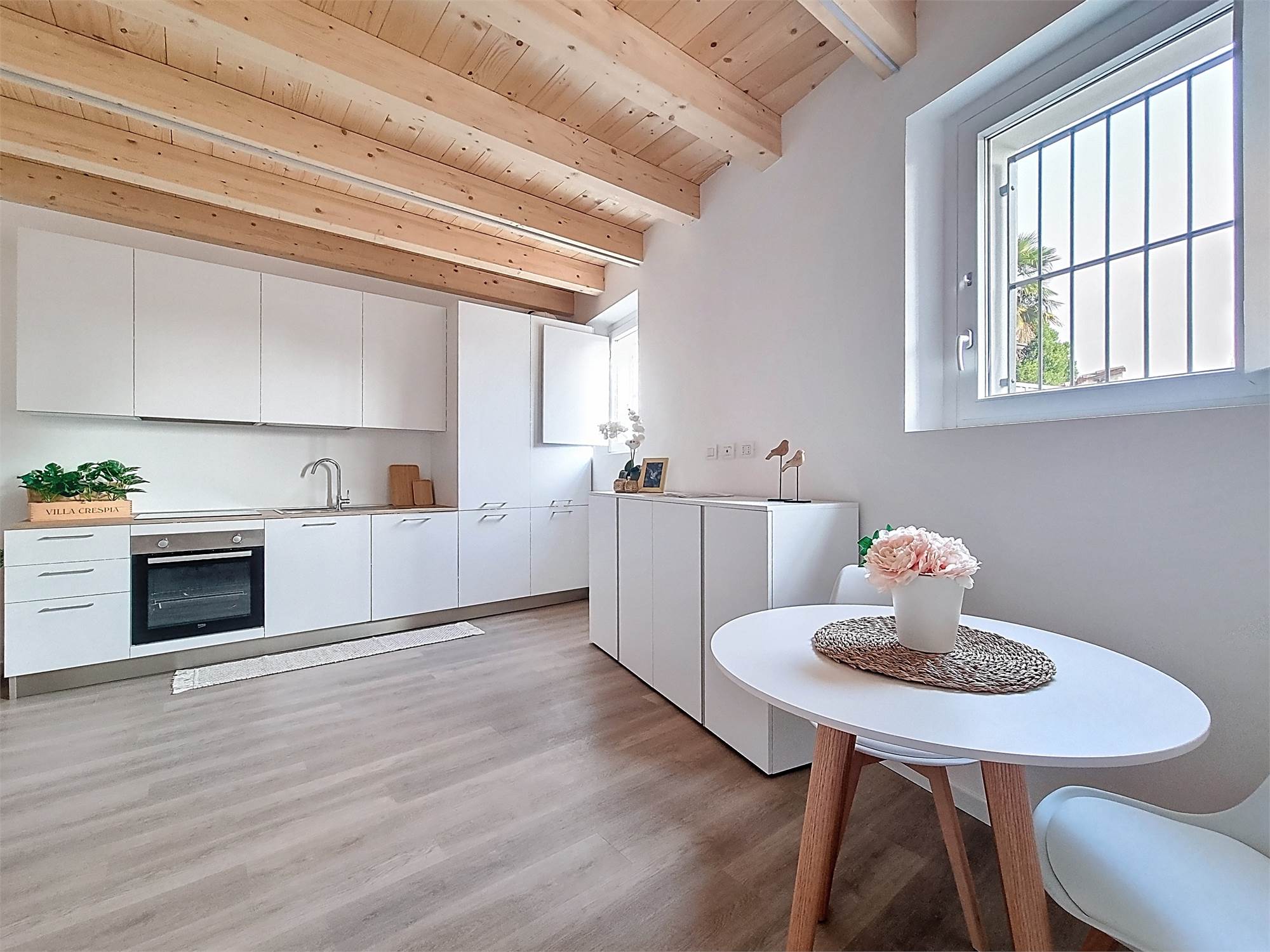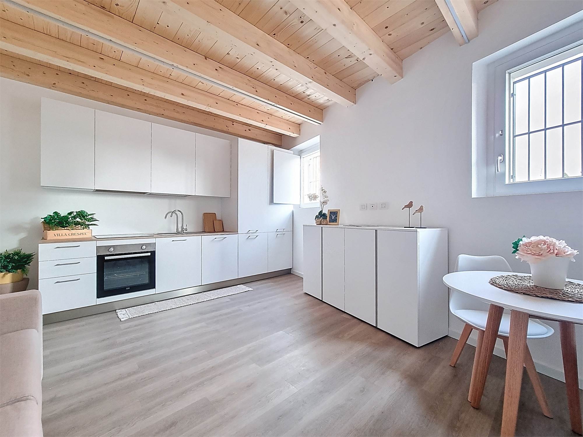 Il monolocale è completamente arredato su misura: dispone di ampia cucina completa di elettrodomestici, mobile divano letto ribaltabile, capiente cabina armadio, credenza, stoviglie e bagno finestrato con doccia e sanitari sospesi, molto spazioso con angolo lavatrice.