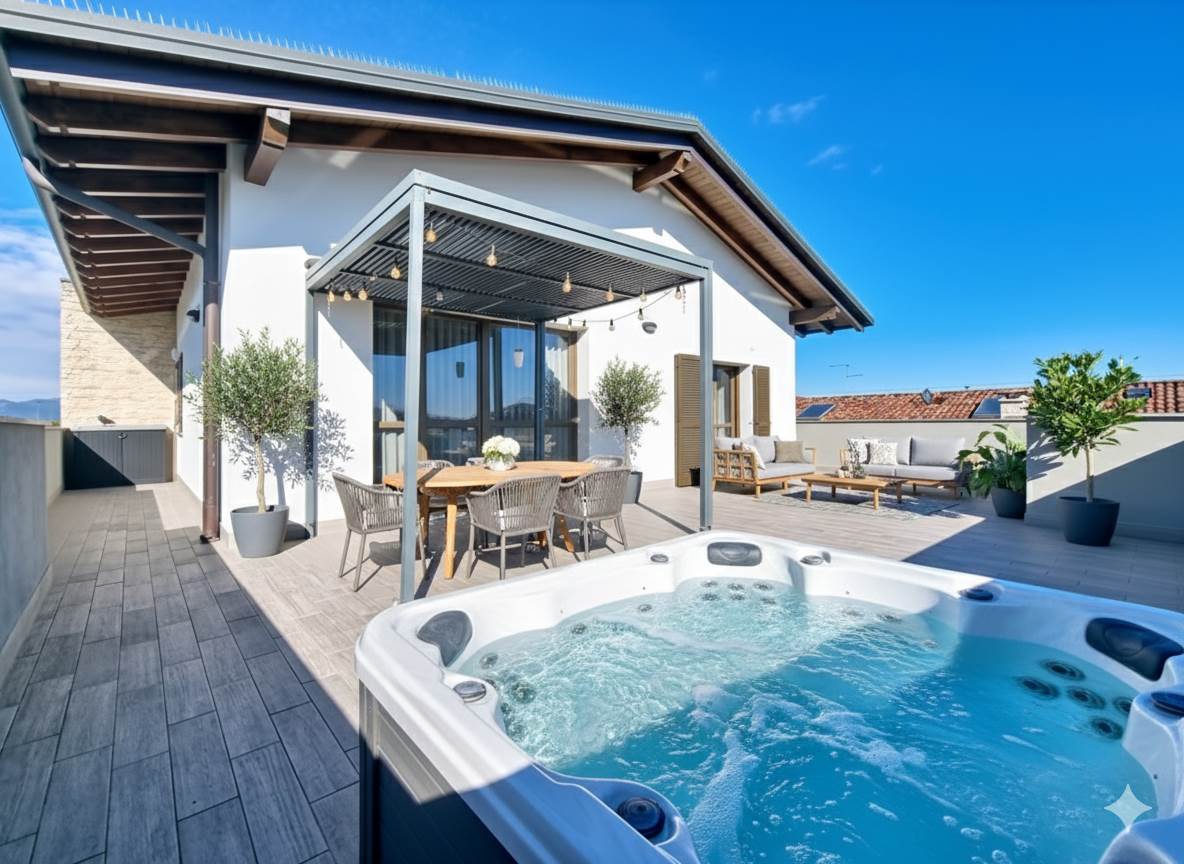 Le ampie terrazze (165 mq) rappresentano il vero punto di forza: già installata pergola “Unopiù”, attacco gas per barbecue e predisposizione zona wellness. Spazi ideali per pranzi all’aperto o per realizzare un giardino pensile.