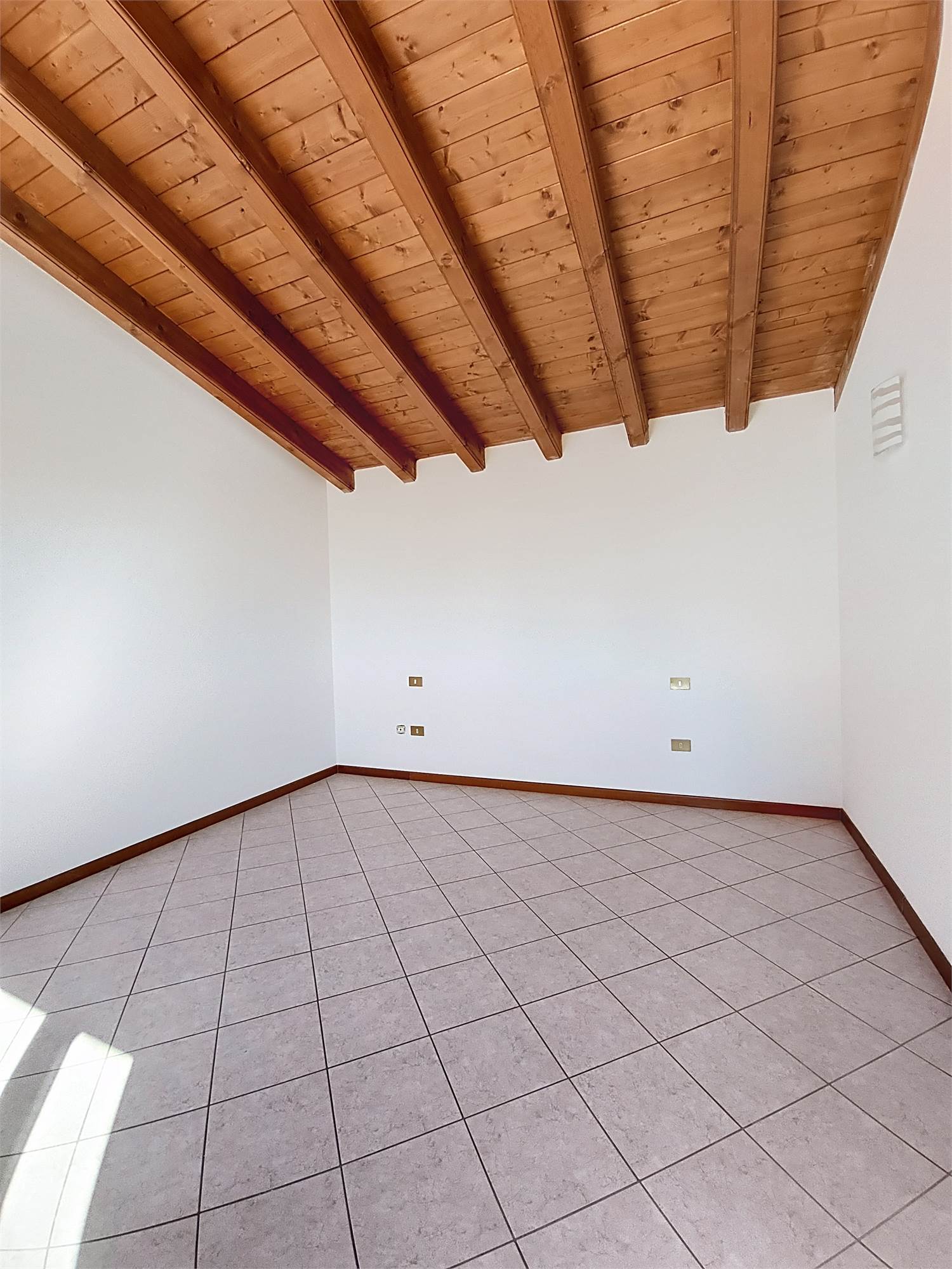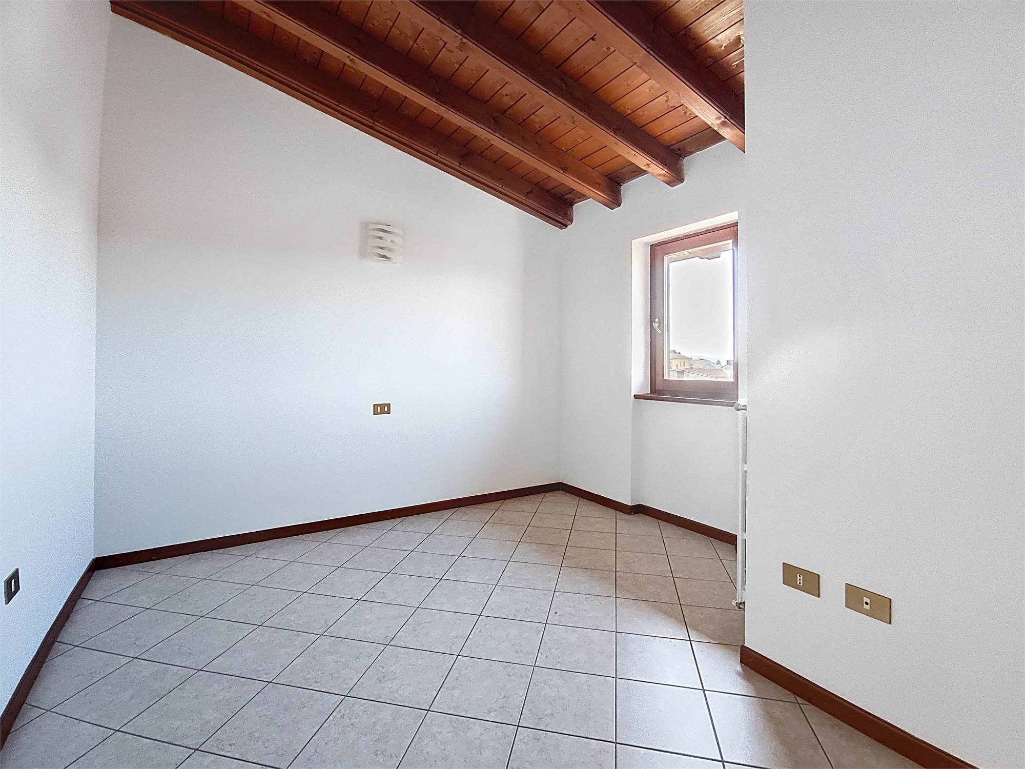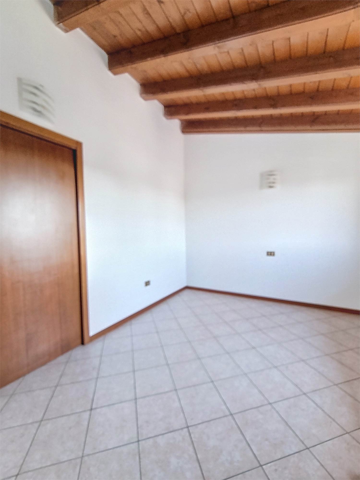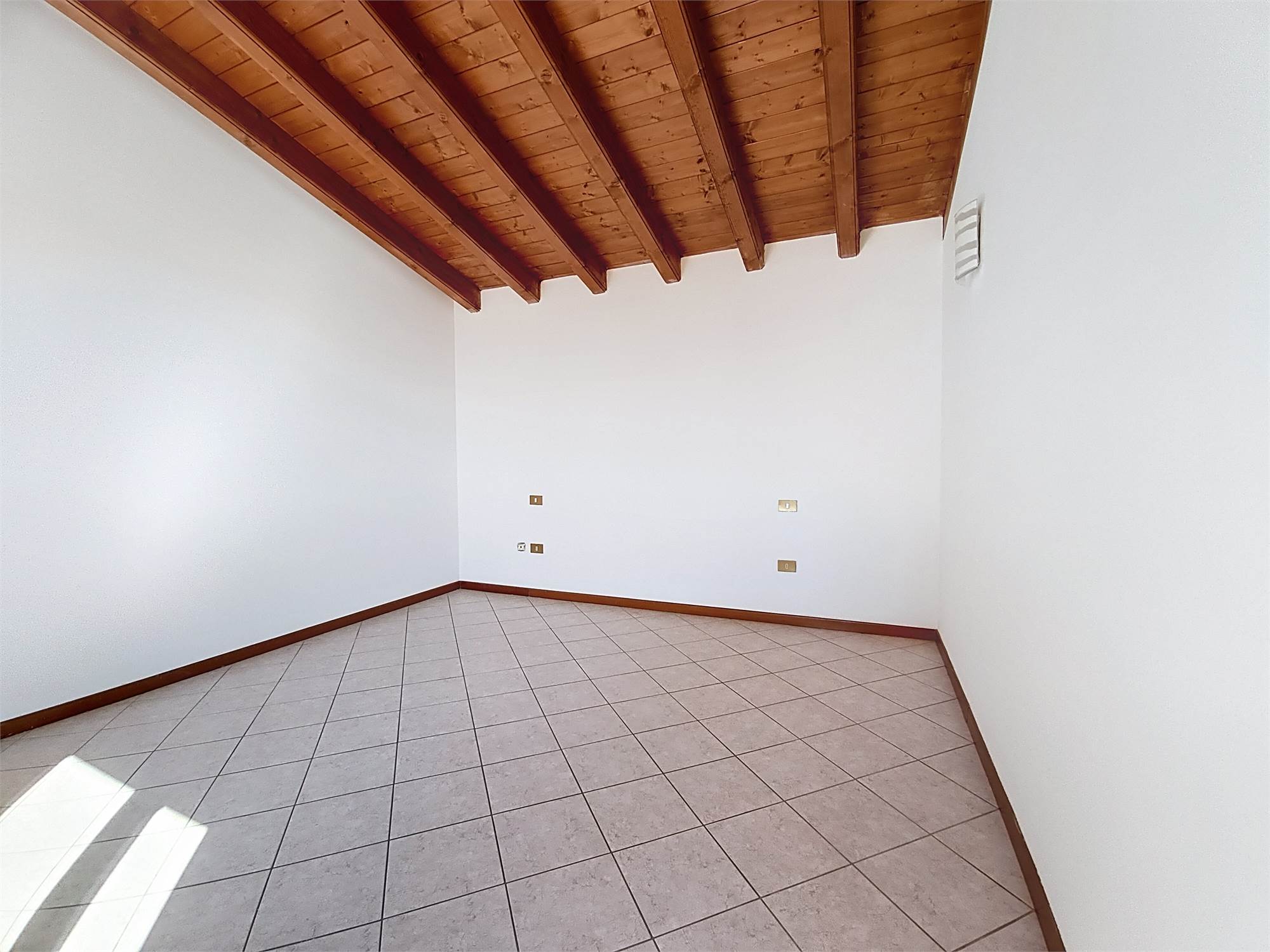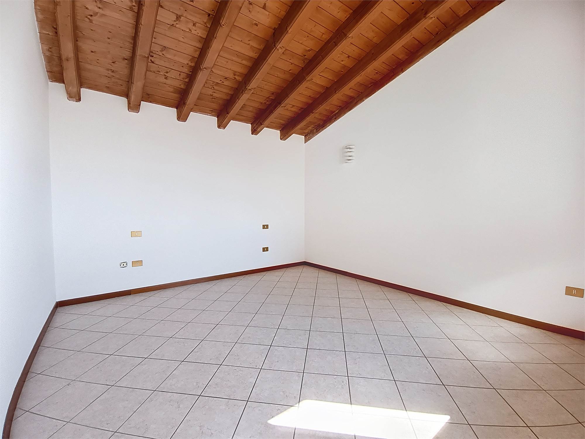 Al piano superiore si sviluppa la zona notte caratterizzata da eleganti travi a vista dove troviamo la seconda camera matrimoniale, una camera e il bagno/lavanderia finestrato con doccia.