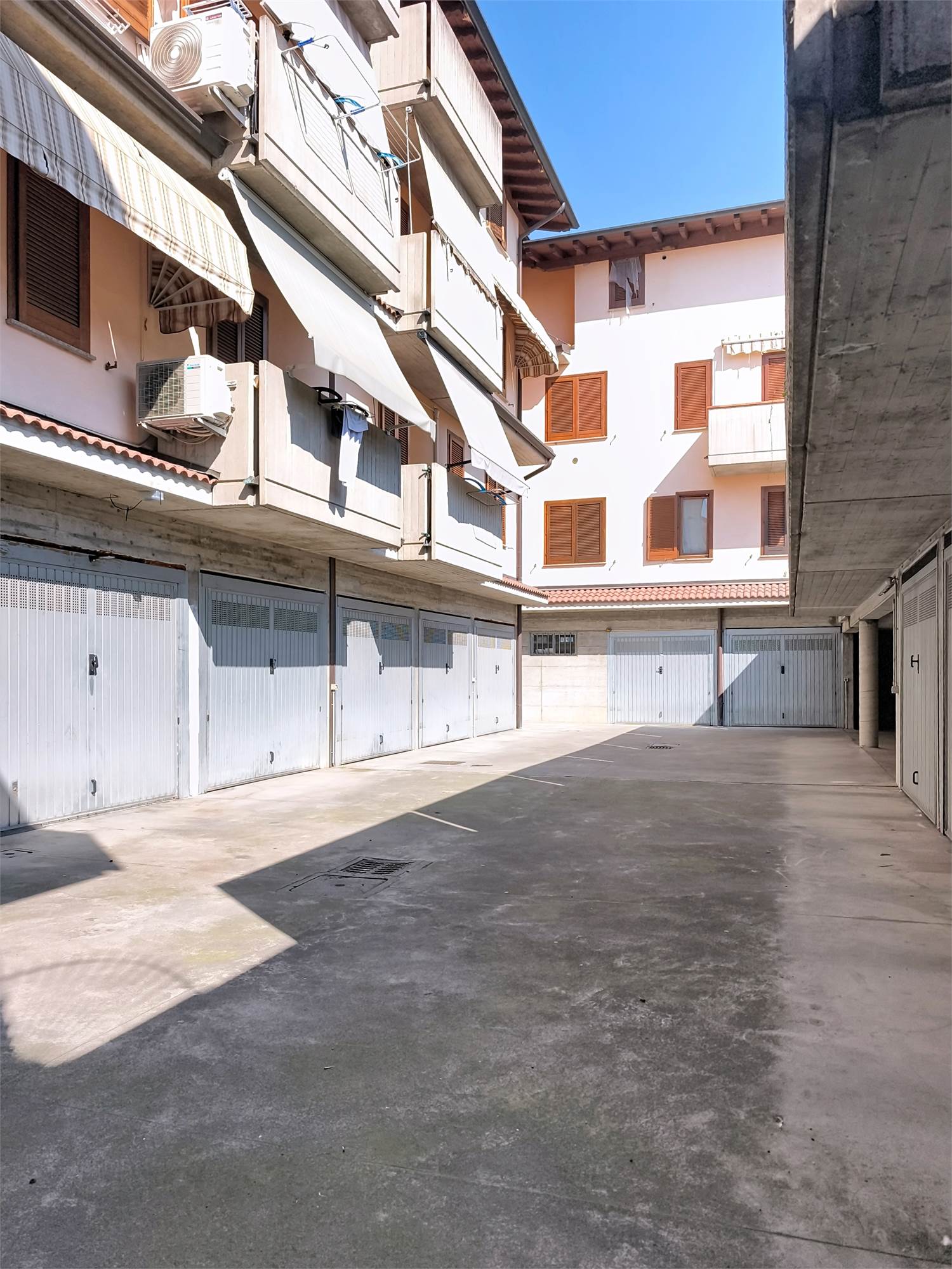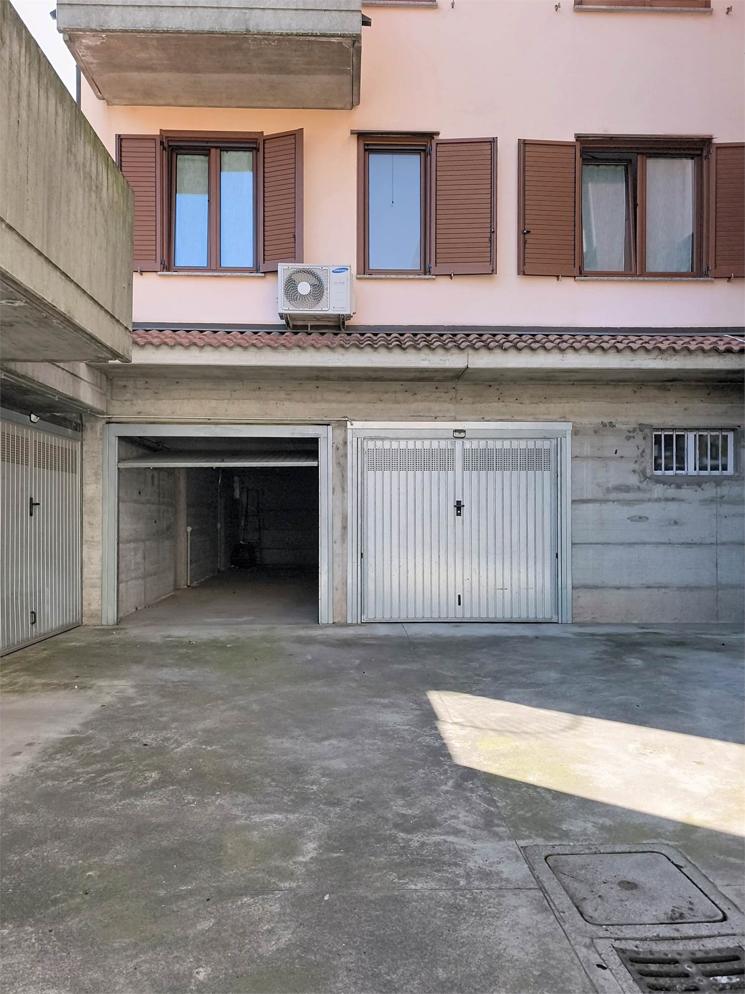 Completa la proprietà un box doppio in lunghezza, direttamente collegato al giardino e situato al piano seminterrato e posto auto esclusivo.