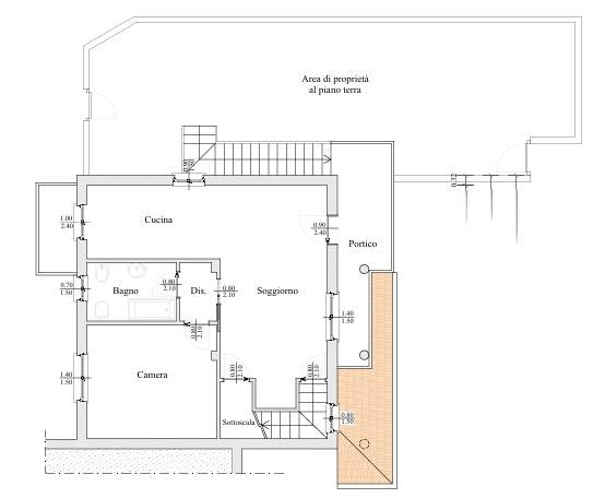 Dal giardino si accede tramite una scala esclusiva al piano principale (primo piano). L’ingresso avviene attraverso una spaziosa terrazza vivibile, perfetta per momenti di relax, che conduce alla luminosa zona giorno con cucina a vista, ben organizzata e servita da un pratico balcone. Il piano è completato da ampia camera matrimoniale, bagno finestrato con vasca e comodo ripostiglio.